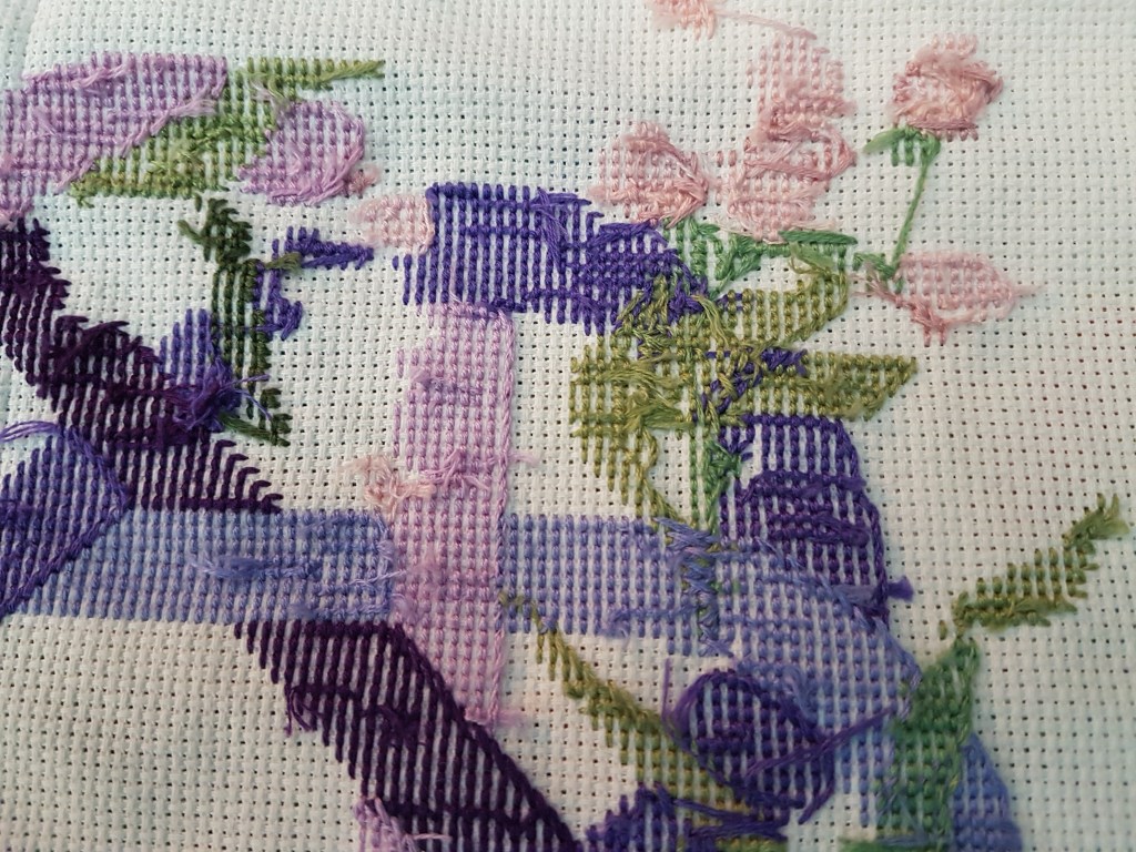 Sometimes I don’t like the pattern as is so I change it up a bit. For example, I am working on a project right now and I really like the design but not so much the colours for what (who) I wanted it for. The main colours in the original design were different shades of tea/aqua with blue, purple and peach flowers. I am making it so that the main colours are different shades of purple with pink and white flowers. I am about 1/4 of the way through and already it looks quite stunning. At least in my opinion.